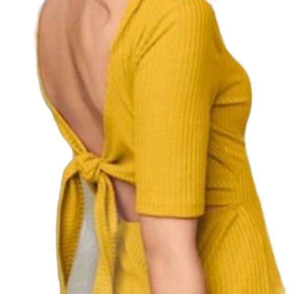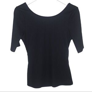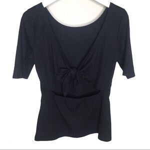 VENUS Ribbed Blouse With Bow Tie Back Detail & 3/4 Length Sleeves Black Medium