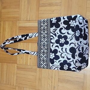 An on-the-go essential, this signature printed tote boasts a spacious interior and one button closure.