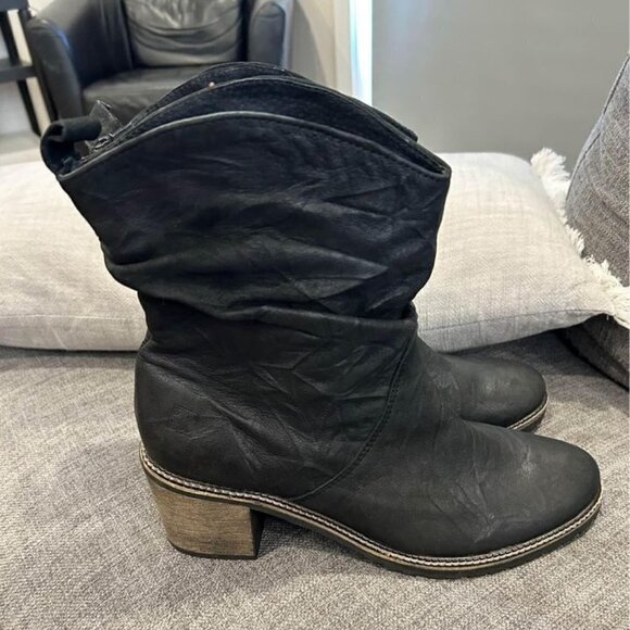 VERA GOMMA woman’s block heel booties. Black leather. Size 41 (10.5) excellent q