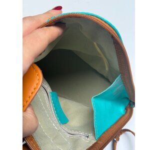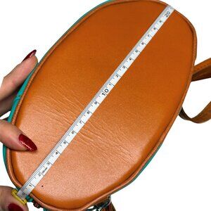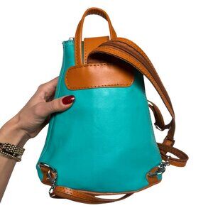 VERA PELLE Italian Genuine Leather Mini Backpack | Mint Green & Tan Brown | New