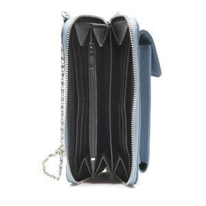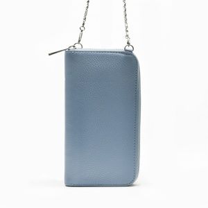 VERA PELLE Wallet and Cell Holder with Zip Closure and Chain Crossbody Strap