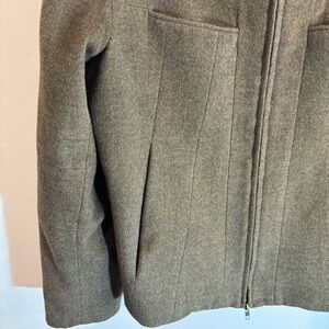 VERGE Sz M Barn Style Coat Jacket Wool Blend Zip Up Pockets Lined Long Sleeve Unisex. Clean minimal lines. Warm and cozy elevated driving jacket. Elegant streetwear. Perfect transitional piece. Oversized.