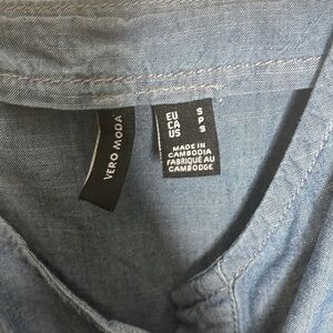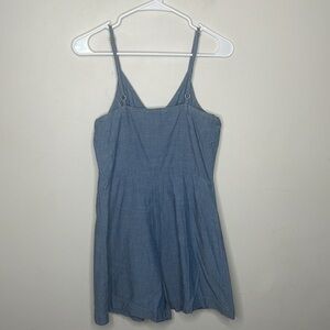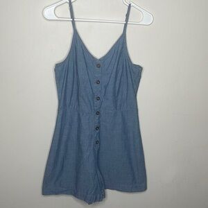 Sweet and playful, this soft chambray romper features slender adjustable straps and easy front buttons. Front button closure V-neck Adjustable straps 50% cotton, 50% organic cotton