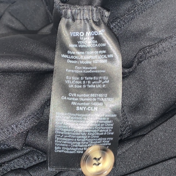 VERO MODA Black long sleeves button down evening jumpsuit size Small