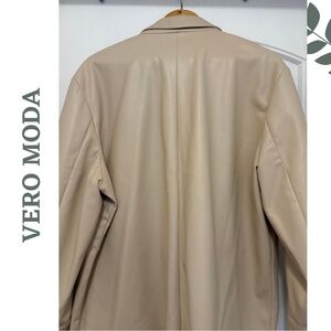 VERO MODA CURVE | Faux Leather Oversized Blazer Lined Tan Plus Size 18