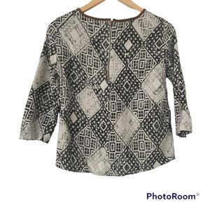 This lovely viscose/cotton blend top is used but in excellent condition. The fabric is textured almost like linen looks.