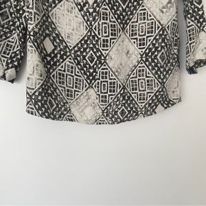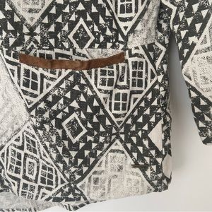 VERO MODA DENIM WHITE/GREY GEOMETRIC PATTERN TOP WITH BROWN SUEDE TRIM TOP, SM