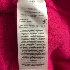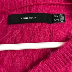 VERO MODA Fuzzy Chic Sweater Top Blouse XL Magenta Pink V-Neckline Long Sleeve