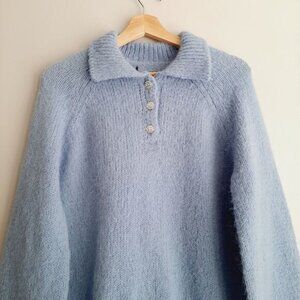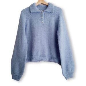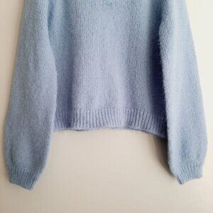 VERO MODA | Mabel Fuzzy Raglan Sleeve Sweater Blue w/ Rhinestone Buttons Sz L