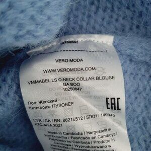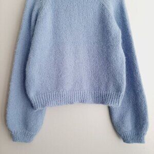 VERO MODA | Mabel Fuzzy Raglan Sleeve Sweater Blue w/ Rhinestone Buttons Sz L