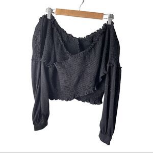 VERONA couture black sparkle smock faux wrap off shoulder crop top with sleeves