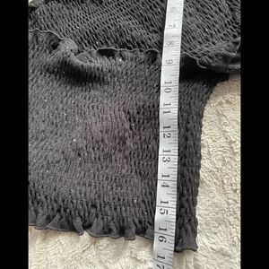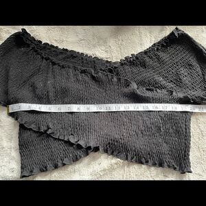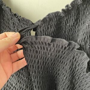 Verona couture black sparkle smock faux wrap off shoulder crop top with sleeves