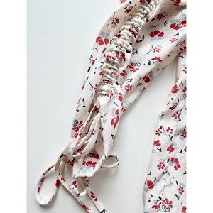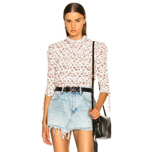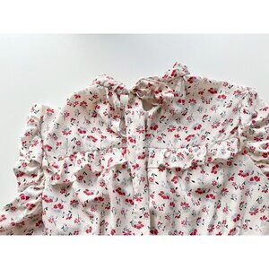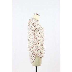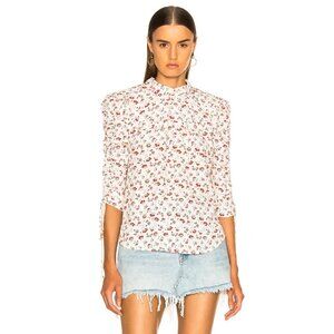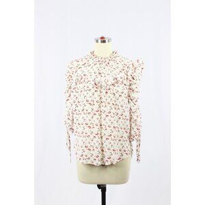 VERONICA BEARD Howell Red Floral Silk Ruffled Yoke Ruched Sleeve Blouse, Size 2