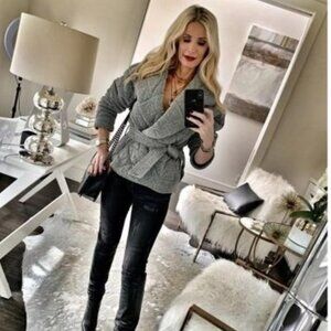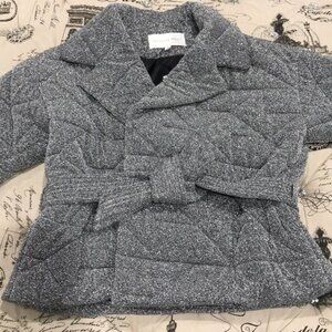 Sparkling metallic threads make this cozy belted coat feel so special.