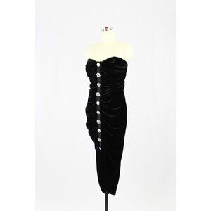 VERONICA BEARD Palo Black Silk Velvet Rhinestone Strapless Draped Dress, Size L