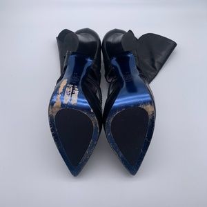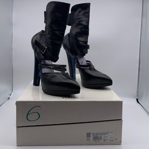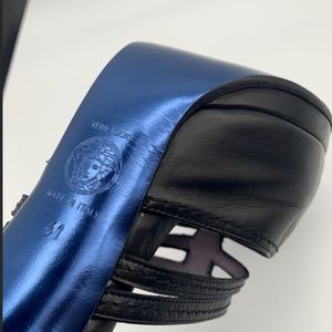 VERSACE BLACK LEATHER CUTOUT BOOTS with BLUE METALLIC SOLE