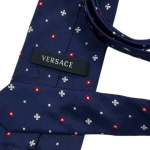 VERSACE Blue Geometric Floral Silk LUXURY Tie ITALY