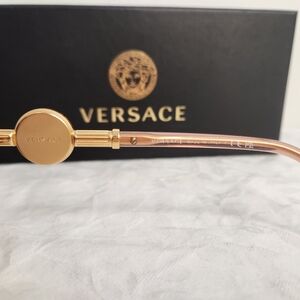 Gold & Rose Gold sides (lamberts) with Classic Gold Italian women's face logo, 100% UV Protection, Near New Condition, one teensie scratch on bottom right lense, too small to pick up on camera (only noticed after cleaning 3 times and holding up to natural light *be sure to ask every seller to do this before buying!)