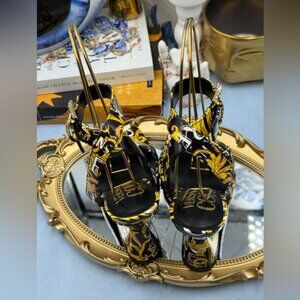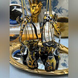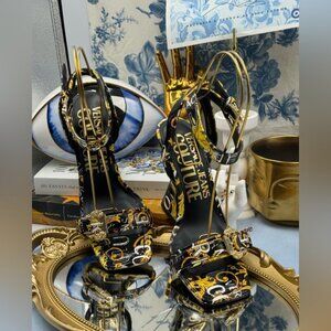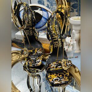 🆕 VERSACE JEANS COUTURE 🧿 NWOB Logo Couture Kirsten Heeled Sandals, Black Sz 7