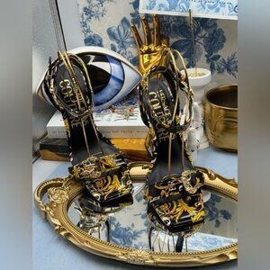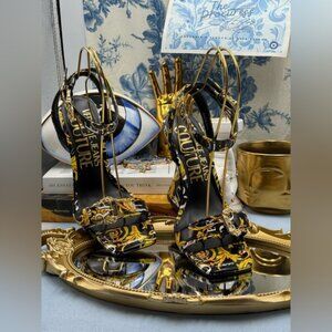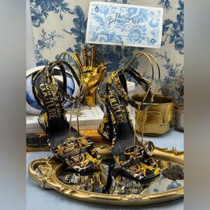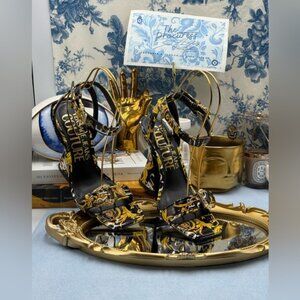 🆕 VERSACE JEANS COUTURE 🧿 NWOB Logo Couture Kirsten Heeled Sandals, Black Sz 9
