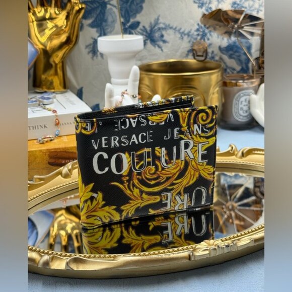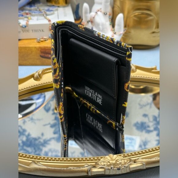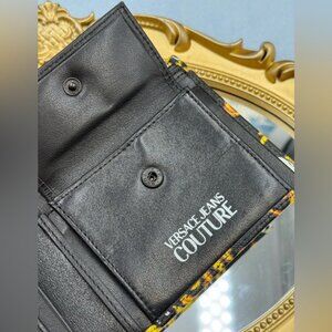 🆕 VERSACE JEANS COUTURE 🧿 NWOT Logo Couture Garland Wallet, Black & Yellow