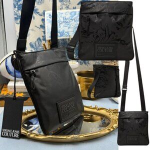 🆕 VERSACE JEANS COUTURE 🧿 NWT Black Coated Regalia Baroque Messenger Bag