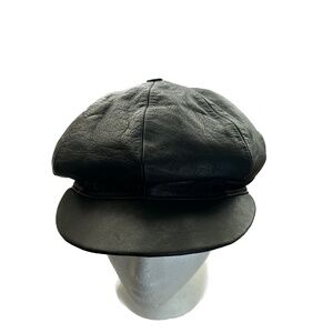 VERSACE Jeans Couture Hat Black Leather Newsboy Cap Made Italy Size 56 US Medium
