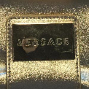The zippered end has a gold tag thats says Versace on one side and Parfume on the opposite side.