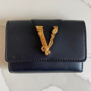 VERSACE black leather virtue mini wallet / coin purse | with original tags