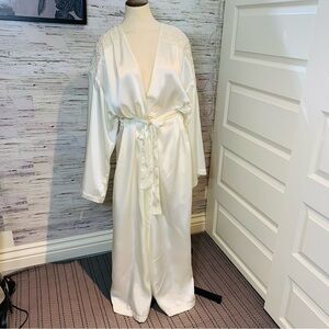 VERSAILLES Satiny Lace Off White Flowy Luxurious Long Dressing Gown Kimono Sz L