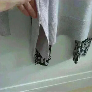 • Style: Pullover, split side hems, long style, button on scarf that is removable, long sleeve, crewneck, ribbed bottom and wrists