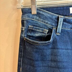 VERVET Sz 29 Dark Wash Slight Mini Boot Cut Distressed Wiskering High Rise Jeans. Cute, stylish, and trendy. Comfortable and sexy.
