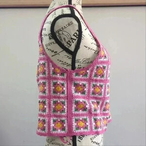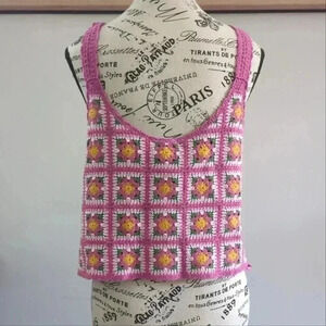 • Style: Cropped, crochet style, 2 inch straps, square floral pattern, Oversized, lightweight