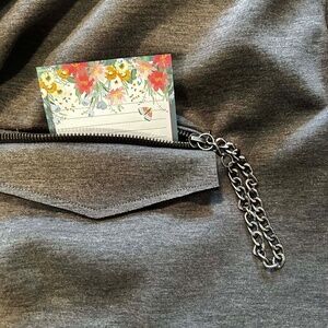 POCKETS: Two front, Zipped, One with Accent Metal Chain