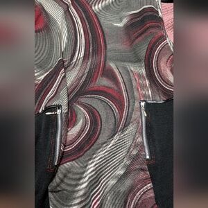 There are two zippers at the front of the sweater that give the appearance of pockets. The zippers do work but there is no pockets. (Please see pictures for reference).