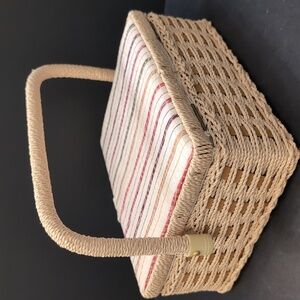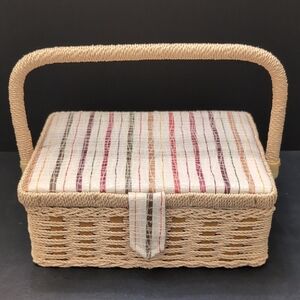 VGT,Dritz Woven/Wicker Small Sewing Basket with Striped Fabric.