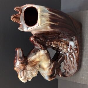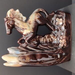 Beautiful vintage brown glazed ceramic horse sculpture/bud vase .