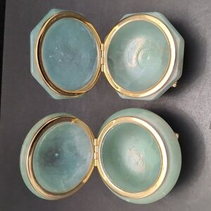 VGT,Green Alabaster Set of 2 Footed Trinket Boxes with Floral Design.