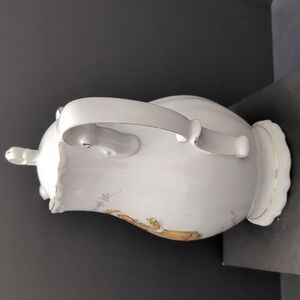 Beautiful vintage white porcelain Holly Hobbie tea pot featuring a young girl In a green dress and bonnet.