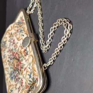 Vintage Walborg mini tapestry floral evening purse/clutch with metal chain and clasp closure.