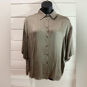 📍🤎VIA BOVIO – Taupe Geometric Button-Up Blouse (L)