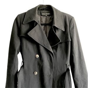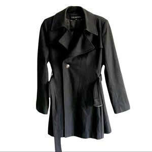 VIA SPIGA Wool Blend Asymmetrical Wrap Coat Jacket Belt Fully Lined Can wear as double breasted or single button closure Black Size 12 Approximate Measurements Pit to Pit 21” Length 33” EUC missing 2 buttons to make it double breasted. Not noticeable if wearing with single button Closure. Easy fix