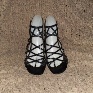 VIA SPIGA-V-LIV-Black Leather Strappy/Ankle Strap Sandal-Sz 8M-Near Mint