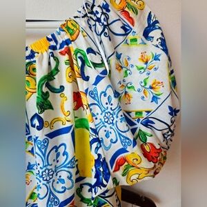 Vibrant women's top featuring a colorful pattern. Perfect for adding a splash of color to your wardrobe.