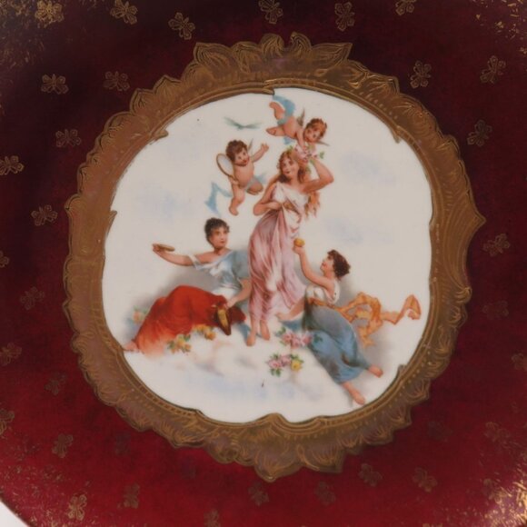 VICTORIA Carlsbad Austria Ruby Red Gilded PLATE 3 Ladies 2 Cherubs Vintage 12"