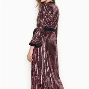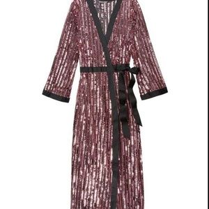 VICTORIA Secret Long Sequins Pink & Black Kimono Robe