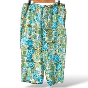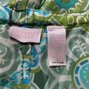 VICTORIA’S SECRET 100% Silk Blue Green Floral Print Cropped PJ / Lounge Pants L