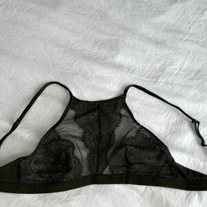 VICTORIA'S SECRET | Bra / Bralette SIZE: Medium (s)CONDITION: Good Condition COLOUR: olive green DETAILS: • High Neck • Lace / Mesh detailing • Adjustable straps • Can be clipped to be racerback style • 4 clasping options in the back