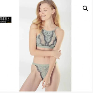 VICTORIA'S SECRET | Bra / Bralette SIZE: extra small CONDITION: Good Condition COLOUR: sage, blue, and gray DETAILS: • High Neck • Lace / Mesh detailing • Adjustable straps • Can be clipped to be racerback style • 4 clasping options in the back
