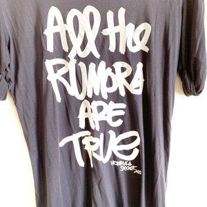 WHAT: Grey short sleeve t-shirt. The saying on the shirt is "All The Rumours Are True". It is quite a long t-shirt that can be worn with leggings. Super comfy and soft. Has a bit of white sequin details on the print (Not sure if the camera picked it up).